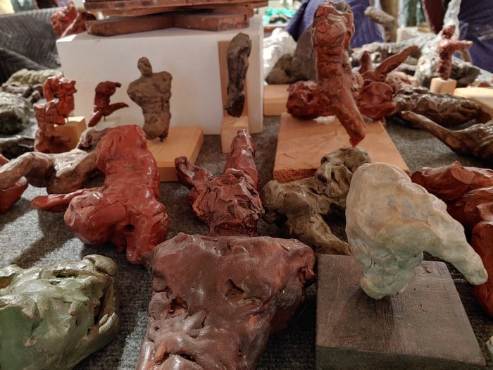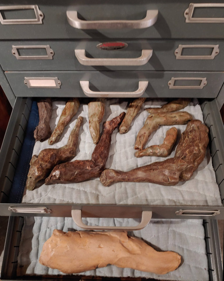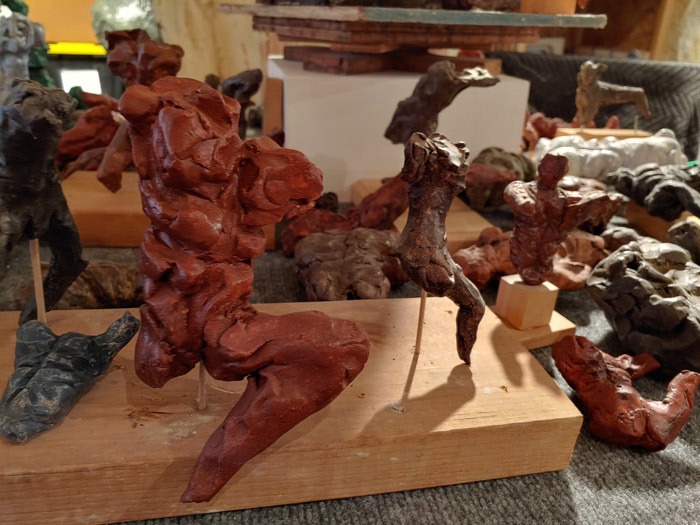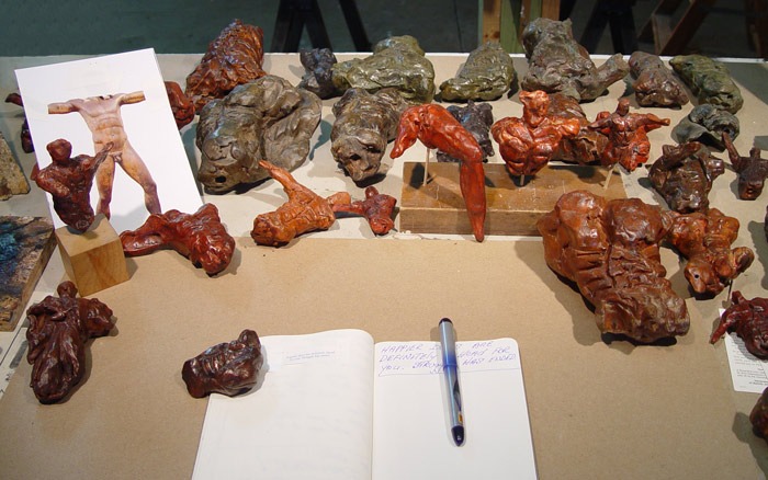 I make a sketch of just about everything it seems. It seems worthwhile as an inheritance from Rodin. I must be in love, or insane (Is there a difference?) as I long ago lost all sense of proportion with actions. I lavish as much time, care and concern on these small bits of mud as on a large bronze. Friends, Caroline and Frank, collectors of the small terra-cottas, (thank God!) may be the smartest of all to cherish these delicate offspring. My world is populated by these clay forms of torsos, figures, heads, legs, hands… too many to photograph, but having the same continued presence as the “Children of Zeus.”